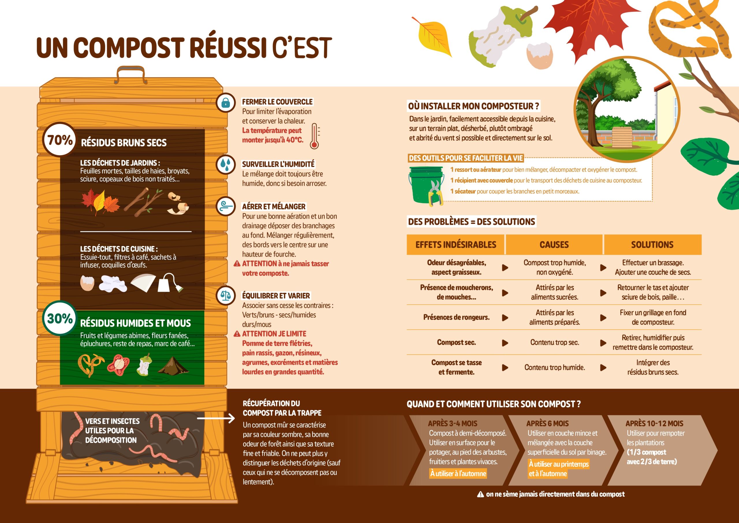 Le compostage est un geste simple et efficace pour réduire ses déchets tout en produisant un amendement naturel. Au-delà de ses bénéfices pour le jardin, le compostage permet de réduire jusqu’à 30 % le volume des déchets ménagers, soit environ 70 kg de déchets compostables par an et par personne.